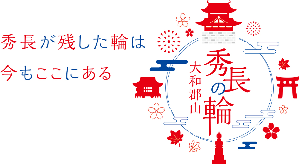 大和郡山い残る秀長の即席を、「輪」とういうモチーフで表現。かつで秀長が気づいた様々な「輪」は、今なお街の中に息づいています。
