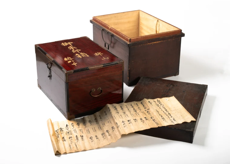 秀長は城下町を整備して、その振興にも力を入れました。現在まで続く城下町の「町割り」は、秀長の頃には完成していたとみられます。城下町の施策として、最も特徴的な「箱本」制度は、秀長の時期につくられたものです。「箱本」制度は、城下町の各町が、警護・火事の対応・伝馬の管理など、城下町全体に係わる役割りを一月ごとに交代で担当する仕組みで、自治の始まりでもあります。月の当番となる町が、重要な書類を納めた「御朱印箱」を持ち回りで管理しました。